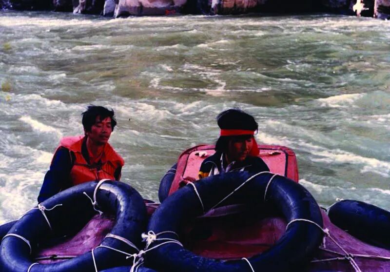 让于忠元感动的是,救了北京队落水队员的郎保洛,还送来一件皮大衣和睡袋——上百公里无人的峡谷,将衣服睡袋给别人,意味着自己受冻。虽然两队一直暗中较劲,但此刻的患难与共,让于忠元感慨:抵达军功乡,后面的风浪更加凶险。军功以上,落差每公里2.8米;而军功以下的拉加峡,每公里落差5.5米,还有一个8米高的大跌水。当真正和大自然交锋,最初一腔热情写下血书的队伍,终于弥漫开一丝丝压抑与恐慌。北京队开始出现两派意见:一派主张采用密封船,桑永利则坚持敞蓬船——“放密封船,那不把北京人的脸丢尽了。河南队就没用密封船。”